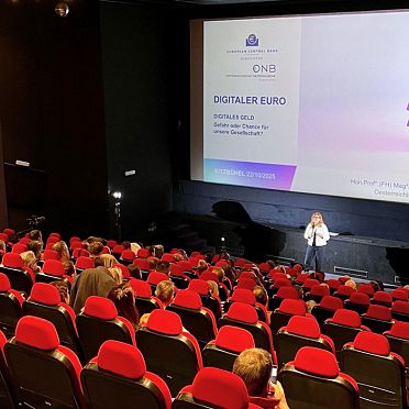Der Vortrag thematisierte den geplanten digitalen Euro, eine Initiative der EZB und der Nationalbanken, die den Zahlungsverkehr in Europa modernisieren und unabhängiger von internationalen Anbietern machen soll.